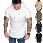 半袖パーカー メンズ プルオーバー ジムウェア トレーニングウェア タイト トップス 無地 ギャザー 薄手 シャツ プルオーバー フード付き スポーツ カジュアル