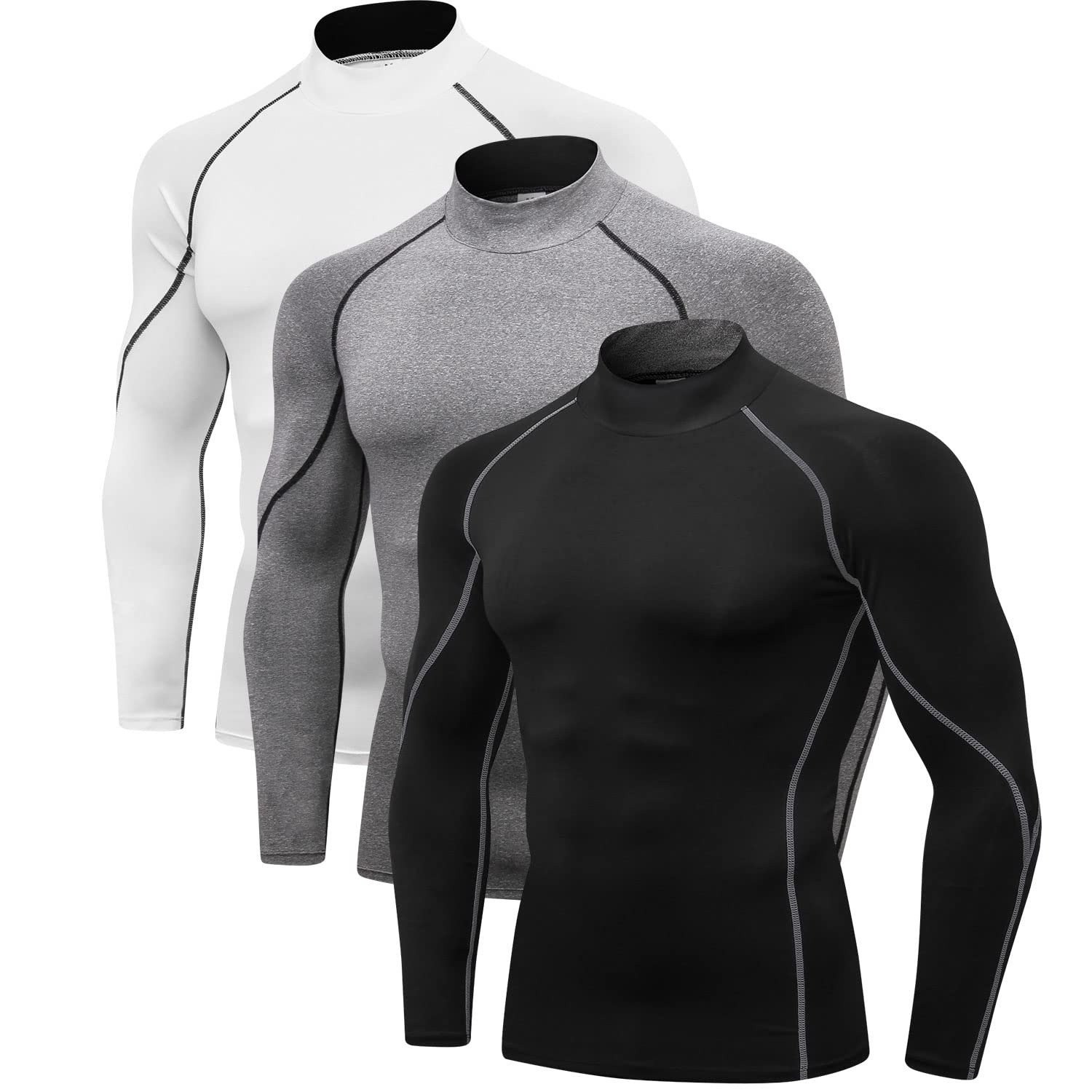 【送料無料】[Odoland] 3枚組 メンズ加圧シャツ 長袖丸首コンプレッションウエア 伸縮性 ボディビル補正下着 筋トレTシャツ 脂肪燃焼 お腹引き締め 加圧式インナーシャツ トレーニングトップス スポーツインナー 秋冬運動着 黒灰/灰黒/白黒 M
