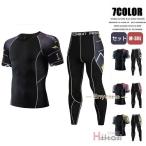 トレーニングウェア ストレッチ メンズ 上下セット コンプレッション 半袖 丸首 タイツ 加圧インナー サイクル 父の日 プレゼント