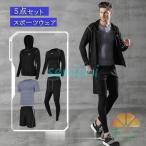 スポーツウェア メンズ 上下 5点セット コンプレッションウェア ジャージ タイツ 半袖 トレーニング 長袖 ショートパンツ 新作