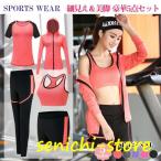 ヨガウェア 5点セット パンツ レギンス ブラ パーカー ジム フィット 通気 トレニング スポーツウェア 上下