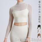ヨガウェア トップス カップ付 レディース 長袖 ショート丈 シアー ブラ一体型 シンプル ハイネック 速乾 吸汗 ピラティス ヨガ ジム 薄手 黒 白
