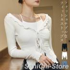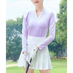 ゴルフ ゴルフウェア 長袖ポロシャツ ショルダーフリル ゴルフ Vスリット トップス レディース レディース
