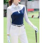 ゴルフ ゴルフ 長袖ポロシャツ ゴルフウェア ライン切替 トップス レディース レディース