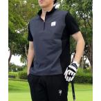 ゴルフ ハーフジップポロシャツ ゴルフウェア 半袖 接触冷感 シルバーロゴプリント 切替 トップス メンズ メンズ