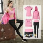 ヨガウェア 上下セット 5点セット ヨガウェア トップス カップ付き タンクトップ スポーツウェア レディース セット トレーニングウェア レディース