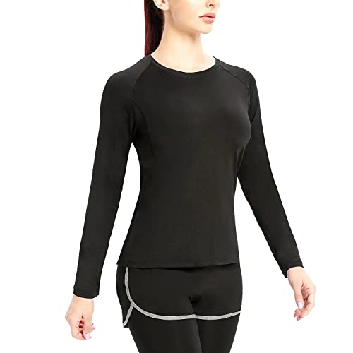[THREEGUN] スポーツ インナー シャツ レディース 長袖 アンダーシャツ コンプレッションウェア ゴルフウェア トレーニング トップス 速乾 冷感(ブラックM)