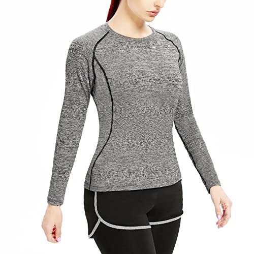 [THREEGUN] スポーツ インナー シャツ レディース 長袖 アンダーシャツ コンプレッションウェア ゴルフウェア トレーニング トップス 速乾 冷感(グレーM)