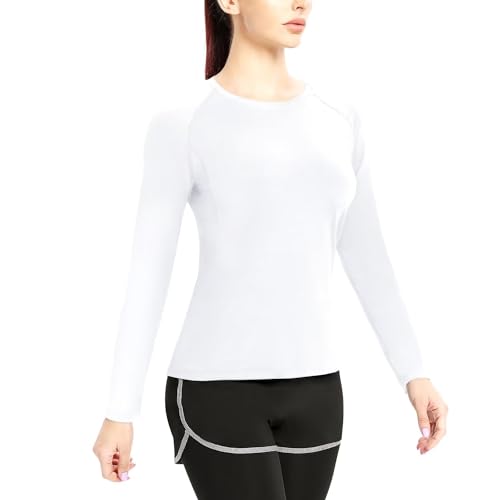 [THREEGUN] スポーツ インナー シャツ レディース 長袖 アンダーシャツ コンプレッションウェア ゴルフウェア トレーニング トップス 速乾 冷感(ホワイトM)