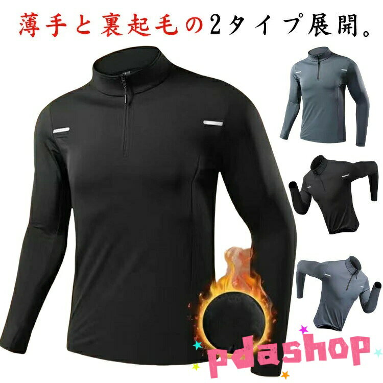【全品2点で5%OFF】スポーツインナー メンズ ランニング トップス アンダーウェア 保温 インナーシャツ ハーフジッパー トレーニングウェア 薄手 ストレッチ 春秋冬 スポーツインナー ゴルフウェア 自転車 バイク
