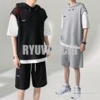 セットアップ ジャージ スウェット メンズ 夏服 半袖 ハーフパンツ 重ね着 上下セット 2点セット カジュアル おしゃれ 吸汗速乾 薄手 ストレッチ ルームウエア