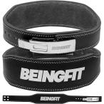 Beingfit トレーニングベルト レバーアクションベルト レザー 革 パワーベルト 筋トレ リフティングベルト(ブラック, L)
