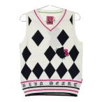 【新品】VIVA HEART ビバハート ×HELLO KITTY Vネック ニットベスト ハローキティ ダイヤ柄 ホワイト系 42 ゴルフウェア レディース