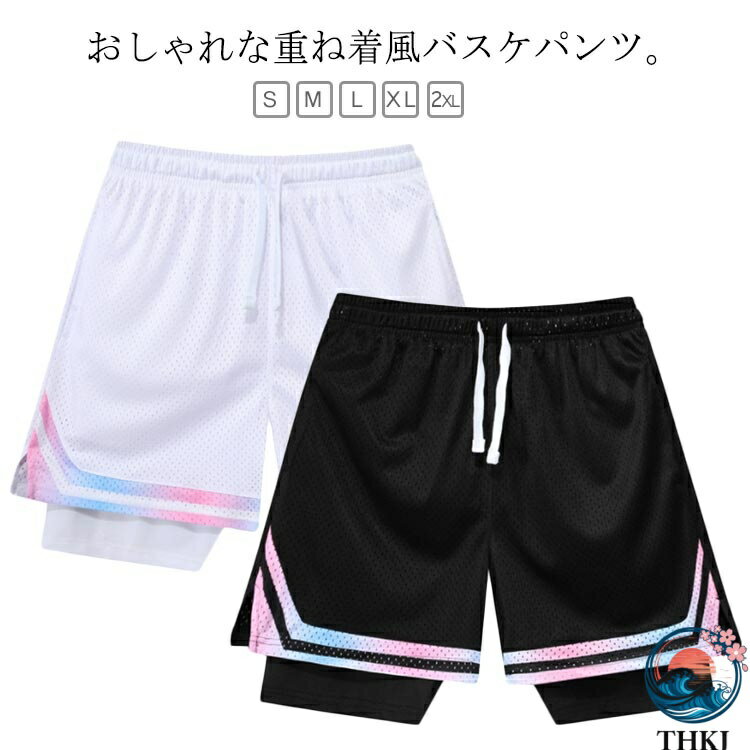 【全品2点で5%OFF】 レイヤード バスパン ジャージ 通気性 重ね着風 ジュニア ショートパンツ バスケ バスケパンツ 速乾性 メッシュ パンツ ハーフパンツ 半ズボン サッカー トレーニング 筋トレ メンズ