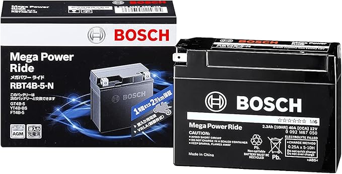 BOSCH/ボッシュバッテリー RBT4B-5-N GSユアサ(GS YUASA):YT4BーBS/GT4Bー5, 古河バッテリー(FB):FT4Bー5, ACデルコ(AC Delco):DT4Bー5