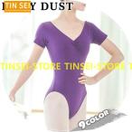 バレエ レオタード 大人用 Vネック ジュニア 半袖 新体操 バレエ用品 スカート付き 練習用 ダンス ストレッチ レッスン 無地