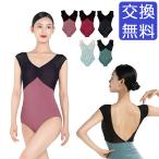Vネック バイカラー キャップスリーブ バレエ レオタード ジュニア 大人用 バストポケット付き バストパット付き メッシュ ツートン ストレッチ