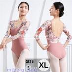 バレエ 衣装 花柄 レオタード バレエレオタード 大人用 ラウンドネック 袖あり バレエ衣装 練習衣装 ダンス服 レオタード
