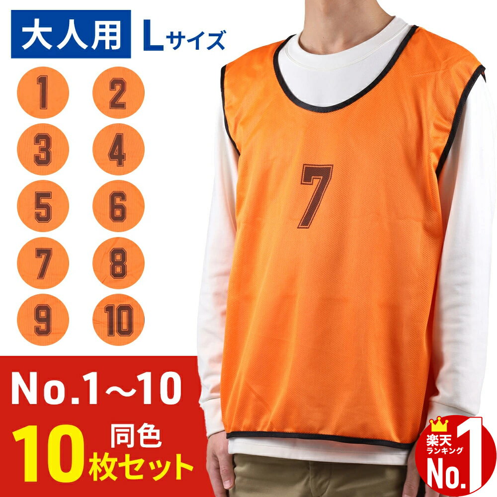 ≪衝撃の99%OFF★12/1先着クーポン限定≫ ビブス 番号入り 10枚セット 番号 ナンバー 数字 入り 大人用 Lサイズ セット ゼッケン オレンジ 蛍光色 ベスト まとめ買い イベント ボランティア 催事 警備 ビブスセット 収納袋付き ユニフォーム ゲームベスト チーム分け