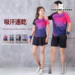 バドミントン スポーツウェア 練習着 メンズ レディース ペアルック ユニフォーム 卓球 上下セット 卓球ウェア ウェア 半袖 ズボン パンツ バレーボール