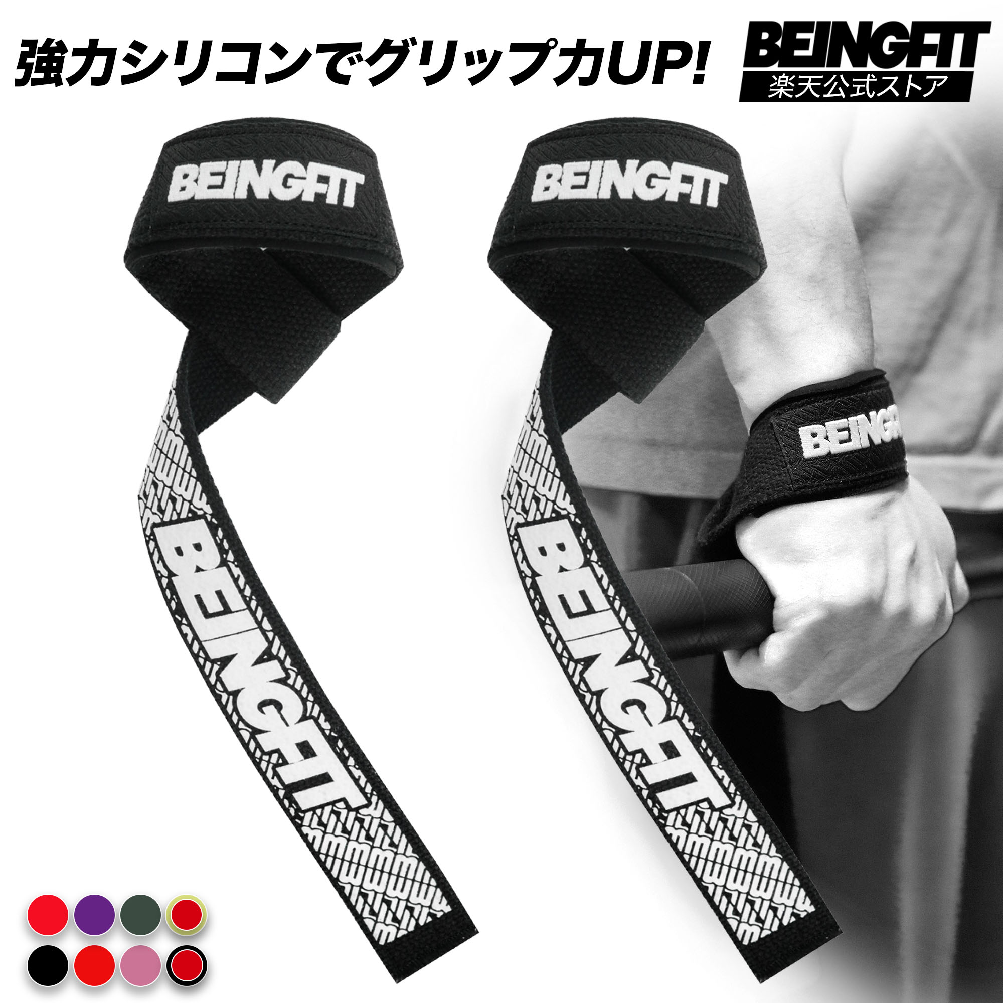 8色から選べるスタイルと機能性。Beingfitで自分らしい トレーニング を!ダンベル バーベル 8色 デッドリフト チンニングBEINGFIT WRIST STRAPS 手首を強力サポート。安定したリフトでパフ...