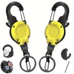 【1個あたり500円】リールキーホルダー 2個セット 伸びる カラビナ式ピンオンリール キーリール 強力 金属ワイヤー 最長60cm キーチェーン 丈夫 紛失防止 キーリール キーチェーン 釣り 小型 アウトドア キャンプ 超軽量カナビラ