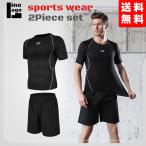 トレーニングウェア メンズ 上下 黒 半袖 セット スポーツウェア 夏 ランニング 速乾 伸縮
