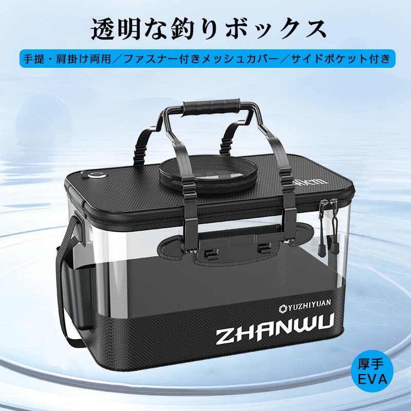 釣り バケツ折りたたみ式 50cm透明バケツ - 魚が一目瞭然 - 軽量で操作が簡単なフィッシングツール、ジッパーの蓋付き - キャン
