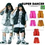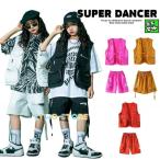 ヒップホップ 衣装 キッズ ダンス衣装 セットアップ フィッシングベスト ハーフパンツ 韓国 K-POP 黒 白 ピンク 黄土色 赤茶色