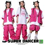 キッズダンス衣装 セットアップ ヒップホップ ファッション ダンス衣装 キッズ 派手 男の子 ガールズ フィッシングベスト パンツ K-POP 韓国 ピンク 白