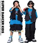 ヒップホップ ダンス衣装 セットアップ フィッシングベスト ハーフパンツ キッズファッション キッズダンス衣装 韓国 K-POP 黒
