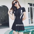 スイムウェア ワンピース水着 ラッシュガード 半袖オールインワン ジップ パット付 スカート サーフィン フィットネス水着 体型カバー UVカット紫外線対策