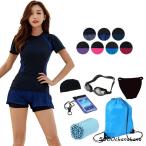 フィットネス水着 レディース 8点セット 体型カバー 半袖ラッシュガード 20代 30代 40代 50代 ママ