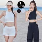フィットネス 水着 レディース セパレート 3点セット 無地 体型カバー スポーツ トレーニング ママ おしゃれ