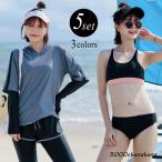 フィットネス水着 レディース 5点セット 長袖ラッシュガード 体型カバー 水陸両用 30代 40代 50代 ママ水着