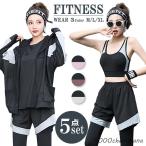 フィットネス水着 ラッシュガード 5点上下セット 紫外線対策 トランクス レディース メンズ UVカット ショートパンツ 体型カバー スポーツブラ パット付