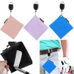 ゴルフボールクリーナー ボール拭き フック付きタオル 伸縮リール付き 汚れ取り 吊り下げ 持ち運び 持ち歩き 伸びる ティー収納可 スクエア 四角 汚