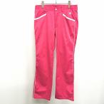 adidas - 85 メンズ(レディース?) ゴルフ フレアパンツ ロゴ刺繍 サイドに1ライン ジップフライ 綿×ポリエステル×ポリウレタン ピンク