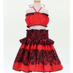 フラダンス ケイキ パイピングフリル 上下 セットキッズ レッド Mサイズ c65M