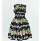 【パイピングパウスカート】 緑のカヒコ柄 ブラックのパイピング pipau-2846GN フラダンス子どもから大人まで 【丈とゴム本数が選べる】