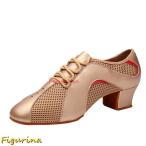 ダンスシューズ レディース 女性用 モダン 社交ダンスシューズ 本革 メッシュ パッチワーク 通気 ラバーソール ラテンシューズ ダンス