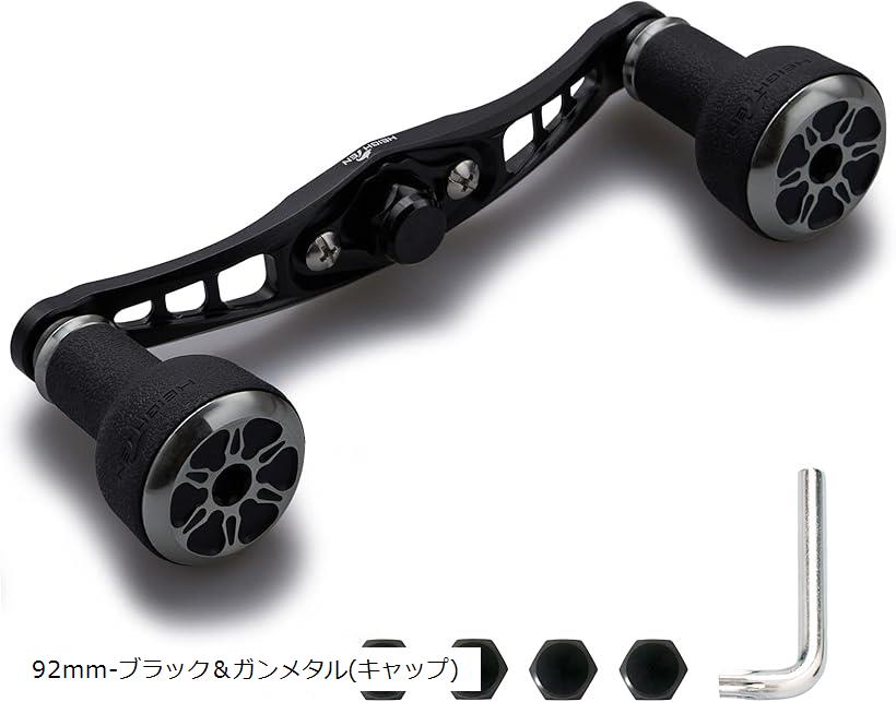 ベイト リール ハンドル 直径24mm TPE製 ノブ搭載 シマノ ダイワ アブガルシア 通用 ベイトリール用 Series 438 (92mm-ブラック&ガンメタル(キャップ))