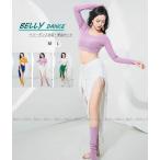 ベリーダンスウェア ベリーダンス衣装 上下2点セット レッスン着 belly dance レディース へそ出し ダンストップス 半袖 ワンショルダー ロング丈 ダンススカー