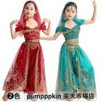 キッズ 子供 ベリーダンス衣装 セットアップ 女の子 舞台ステージダンス衣装 スパンコール キラキラ ジャスミン風 演出服 半袖 ショート丈トップス ロング アラ