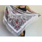 ベリーダンス ジプシー スクエアスカーフ 白 花柄フリンジ ヒップスカーフ