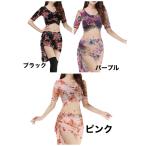 レディースベリーダンス衣装 セットアップ 豹柄 花柄 総柄 半袖ス+スリット有りロングスカート 社交ダンス 練習着 レッスン着 S?3XL