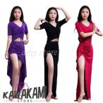 ベリーダンス 上下セットアップ ダンス衣装 練習着 Vネック スカート スリット入り インナーパンツ付き ベリーダンス衣装 レッスンウェア ダンス授業 パフォーマ