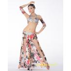 l新着 ベリーダンス 衣装 オーダーサイズ衣装 コスチューム 長袖付きブラ ロングスカート インナーパンツ付き 2点セット 花色 qc3006-1