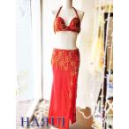 準備中 ベリーダンス エジプト製 衣装 ブラ スカート 2点セット 赤 金