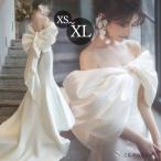 ウェディングドレス ロングドレス トレーンドレス 編み上げ 大きいリボン サテン 背中開き 袖あり 肩出し オフショルダー マーメイドドレス 二次会 花嫁 結婚式
